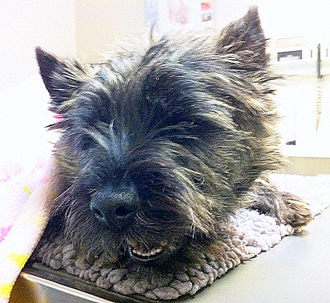 Kan ‘hjemme med syk hund’ være en godkjent grunn til å være hjemme fra jobb tro? Igår kveld og idag morges gikk Emil rundt og harket som om han hadde halsen full av gress strå – så jeg tok han med til veterinæren for å bedøve han og kikke nedi der.