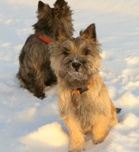 Hadde: Minus 11 grader, masse snø og sol. Tilsatte: 2 stk Cairn – Emil og Ronja.