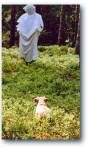 Vi møtte forskjellige skumle ting inni skogen der. Det spratt opp kjeledresser, det krøyp kamuflasjekledde folk rundt og det kom spøkelser! To på en gang! Jeg har sett filmer på UTube, der bikkjer rett og slett rømmer til skogs i de sitasjonene, men ikke Emil nei. Som den terriern han er så møtte han situasjonene greit med både knurr og bjeff. Klar til å forsvare oss begge. Det var bare når spøkelsene kom litt for nærme at han tenkte det var greit å stå BAK meg og bjeffe og knurre… Han hissa seg ganske mye opp, og hadde full kontroll på begge to hele tiden – men når trusselen kunne undersøkes og spøkelsene ble avkledt, så hadde han glemt hele greia.