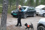 Vel, mandagen rant i flott vær og overraskelsene kom på en måte i kø. En deltaker hadde havarert på Elverum og skulle komme etter, en annen hadde skadd hund, tredjemann hadde man ikke hørt noe fra siden sist samling. Så det var greit at Tom, mannen til Karin og hunden Kajsa steppet inn på laget vårt. Det hører med til historien at det enda er uvisst hvor det ble av den havarerte ekvipasjen som snudde på Elverum. Hu’ har vi ikke sett…. Og på toppen av det hele så punkterte jeg på vei tilbake fra skogen på mandagen..