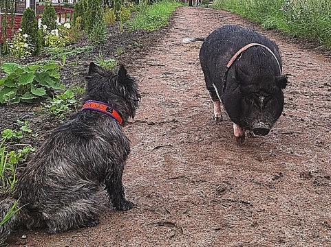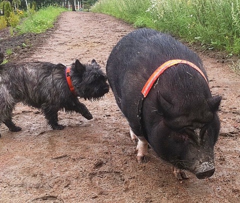 Vel, Emilsen fant purka han og forsøkte seg på noe som liknet gjeting… Ikke trodde jeg det bodde en BC i terrier’n men You’ll never know! Håper det kommer frem i lydighetstreningen snart!