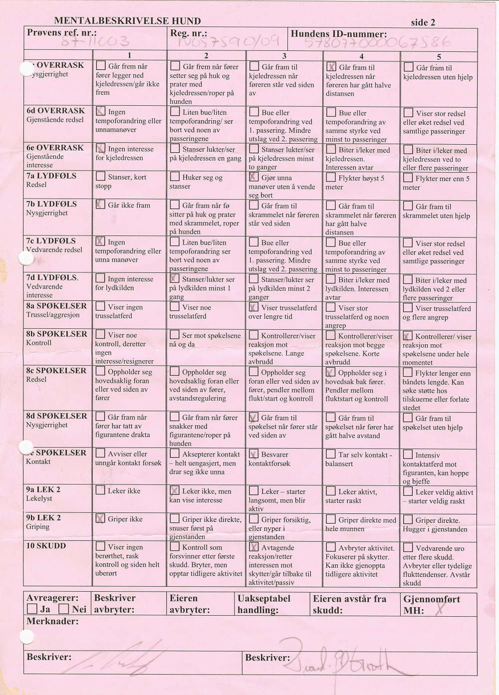 Ronja sin K test er en litt forenklet MH test og ble tatt forrige helg i Larvik. Ronja er en litt mer voksen og rubust sjel enn Emil og det viser også testresultatene. Hun scorer max på det meste faktisk! Skuddfast, topp sosial, ikke veldig skremt over å møte frakkekledte menn i skogen…. Så er strålende fornøyd og det er da klart for Ronja å starte i sporkonkurranse. Er bare litt lydighet å øve på….
