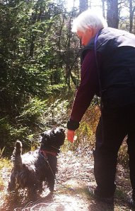 Det som funket utrolig mye bedre enn sist denne helgen var imidlertid sporet! Vi la også ut et ‘konkurransespor’ med pinner og alt. Greit at Knotten og jeg gikk over en pinne og surra litt på slutten, men han fulgte sporet som en Gud jo! Vi endte opp på toppen av et svært stup og der så vi ned på alle de andre kursdeltakerne og sauer! Ble litt for mye for noen og enhver tenker jeg!