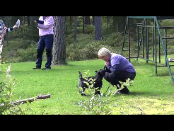 På apellbanen gikk lineføringa sånn passe. Jeg måtte bruke lina i et par vendinger og ‘Hvem er sitt?’ oppsto innimellom – men vi fikk da 6,5. Gå foran i line foregikk på samme vei som budføringa og det ble litt trekking hit og dit, men han berga da en 5’er. Det kunne virke som om han ved dekk under marsj var lut lei av at det ikke kom belønning, så da gikk han litt på feil side og litt bak meg – og helt ute av kontakt så å kommandere dekk der ville ikke vært noe poeng. Bankersøvelsen innkalling fra sitt funket heller ikke, da ville dyret heller kikke på menneskene på sidelinja og han oppdaget Karl Olav som filmet. Han apporterer flott, men jeg klønet litt ved mottaket og mistet apportbukken i bakken – men berget en 7,5 poenger her. Tid for hinder; – og da vet ikke dommeren hvor høyt det skal være.. Jævlig irriterende. Men jeg prøver da å ikke lage noe trøbbel eller bråk og godtar de 4 plankene som ligger der og tenker at hoppe kan han jo! Det var jo altfor høyt!! Herregud så han vegrer selvsagt og bare kommer tilbake til meg. Da mener dommeren at jeg ikke har flere sjanser på å prøve og jeg har jo uansett gitt opp forlengst.. Teit slutt, vi kunne dratt iland flere poeng om jeg ikke hadde blitt så oppgitt. Så det får være målet neste gang. Jobb like hardt med hver øvelse uansett om den forrige gikk skeis! Vi ender opp med 164,5p – men uansett en godkjent konkurranse da! En uke til neste offisielle start – det ER endel muligheter her altså om jeg bare kan beholde troen. Ups glemte nesten; han fikk 9 i fellesdekk! Det er flott! Litt treg neddekk, jeg måtte vel vente 20 sekunder før han bevilget seg ned i dekk, men han lå pal – selv om det ble luktet mye opp i lufta.