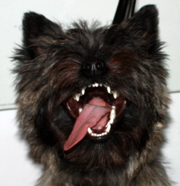 Men det som ikke er så greit er at ting han kan godt på trening og i andre sammenhenger fint kan svikte totalt på en konkurranse. Igjen kan jeg delvis skylde på hans medfødte egenskaper. Alle hunder KAN nemlig ikke brukes til alt. Det er en oppfatning jeg innimellom støter på og som jeg faktisk og hadde selv en periode men som jeg nå blir sååå lei av å høre; – Noen påstår i fullt alvor at visst kan alle hunder lære det samme! Det tar bare mer tid, krever mer tålmodighet…’ Bullshit! De forskjellige rasene er laget for forskjellige ting. Også hender det da at det kommer et stjerneskudd som er annerledes enn det som er vanlig for den rasen og kanskje i tillegg en kjempbra hundefører.. Og da blir det brukt for alt det er verdt: ‘-Han bør da kunne det han, jeg har sett en sånn vinne en konkurranse etc etc.’ Javisst finnes det variasjoner innen en rase. For Cairn sin del – svært store – siden det ikke avles planmessig på bruksegenskaper. Men det er ikke nok til å si at alle hunder kan lære alt. For det kan de ikke.Men det jeg kan er å få gjordt mest mulig ut av det som er. Og det jeg kan er å være en støtte for han. Men det er vanskelig å forutse når han ramler sammen – for det kommer nesten som lyn fra klar himmel og er utrolig frustrerende. Kanskje dukker en ‘skummel hund’ opp, kanskje er dommern litt for kul, det er for dårlig vær, for bra vær eller jeg er uttafor. At jeg blir uttafor er igrunn ikke veldig rart siden jeg hele tiden må være klar i tilfelle han gjør noe uforutsatt. Men det at jeg er uttafor er det eneste jeg faktisk kan gjøre noe med og det er helt utilgivelig med en slik hund som Emil er og som trenger masse støtte.