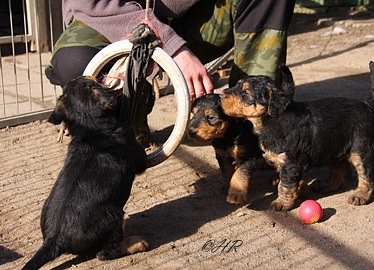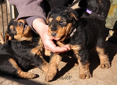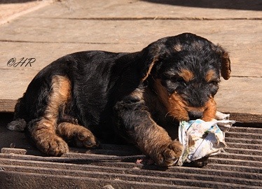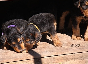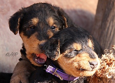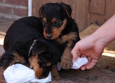 Har ikke skrevet så mye om det her, men ankomsten av vår nye hund – en Airedale Terrier fra Tyskland – nærmer seg. Jobber med å lage egen side til ChaBlis – som hun skal hete – men jeg fikk nylig noen fantastisk flotte bilder fra oppdretter Harriet Rosenthal i Tyskland og måtte dele dem ASAP! Valpene er her 5 uker og er nå i full gang med å utvikle egenskapene sine og vise hvem de er og hvem de kan bli med rett påvirkning. Jeg ser at de allerede nå er gode på drakamp og at noen av dem er i full gang med innlæringen av sitt! Det er så bra!