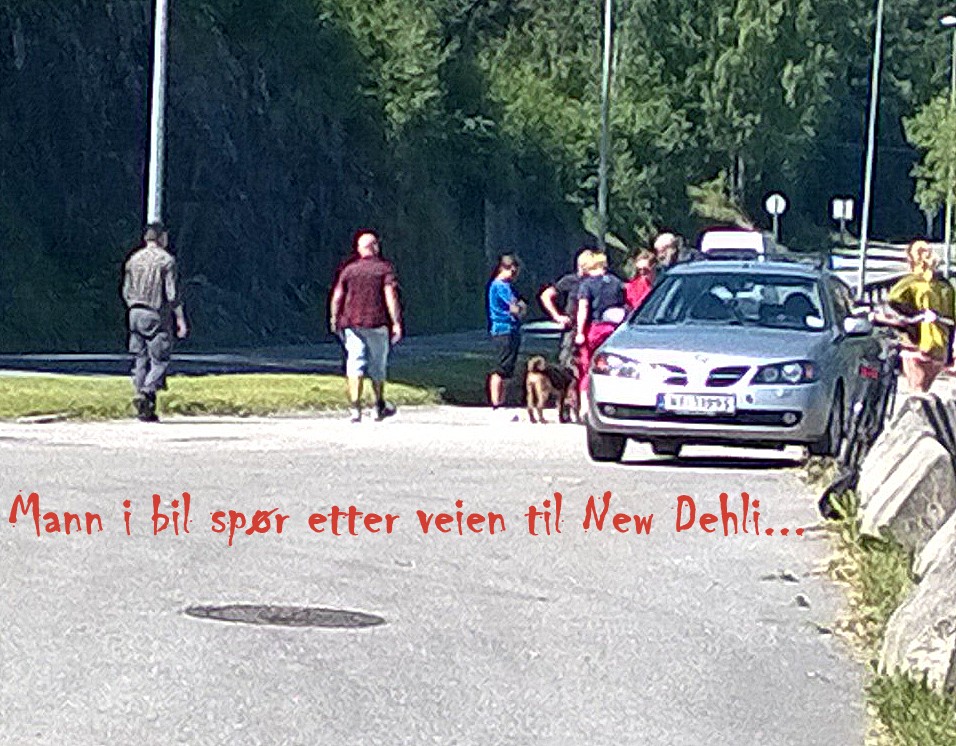 Bil stopper og spør om noe. Man skal da ha kontroll på hunden mens man svarer den i bilen. Også kommer det noen flere joggere… Også – siste biten – da skal hunden bindes opp og eier gå i skjul. Det skal passere en hund da også. Den oppbundne hunden skal forholde seg rolig.
