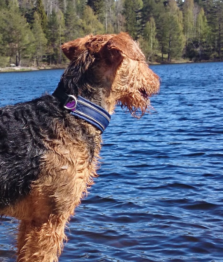 Nå er det badetemp for gærne skjeggedyr og enda ikke badetemp for mennedyr – så det er fritt fram å herje! ChaBlis har et nærmest sykt vannforhold. Hun piper når hun ser vann ut fra bilvinduet. Når jeg åpner bildøra på Landfalltjern, STYRTES det ut, ovee hele gressletta og rett ut i vannet. Emil henger på aller sist, for han vet at han DØR om han blir våt høyere opp enn leggen.. Mens Ronja synes det er litt morro.