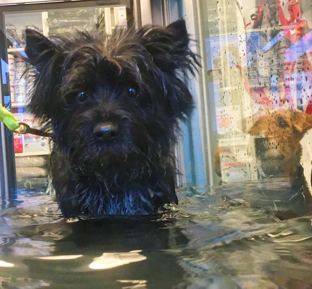 Emilsen på opptrening hos CoolDog Katja Petrell.. Benet begynner virkelig å fungere fint nå, og i vanntredemølla får han både rett belastning og kompresjon på leddet.