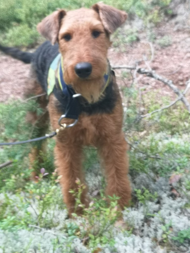 Panikktrening dagen før, for vi hadde ikke trent på å melde på ukjente, helt åpne figger og vi hadde jo igrunn heller ikke trent så mye på tomslag. Så jeg regna med at dyret kom til å dra langt og lenge uti skogen der og mulighetene for opprykk lik null og tok det som en test. Takk til Monica som heiv seg ut i skogen på kort varsel. Det var varmt og det var mygg.