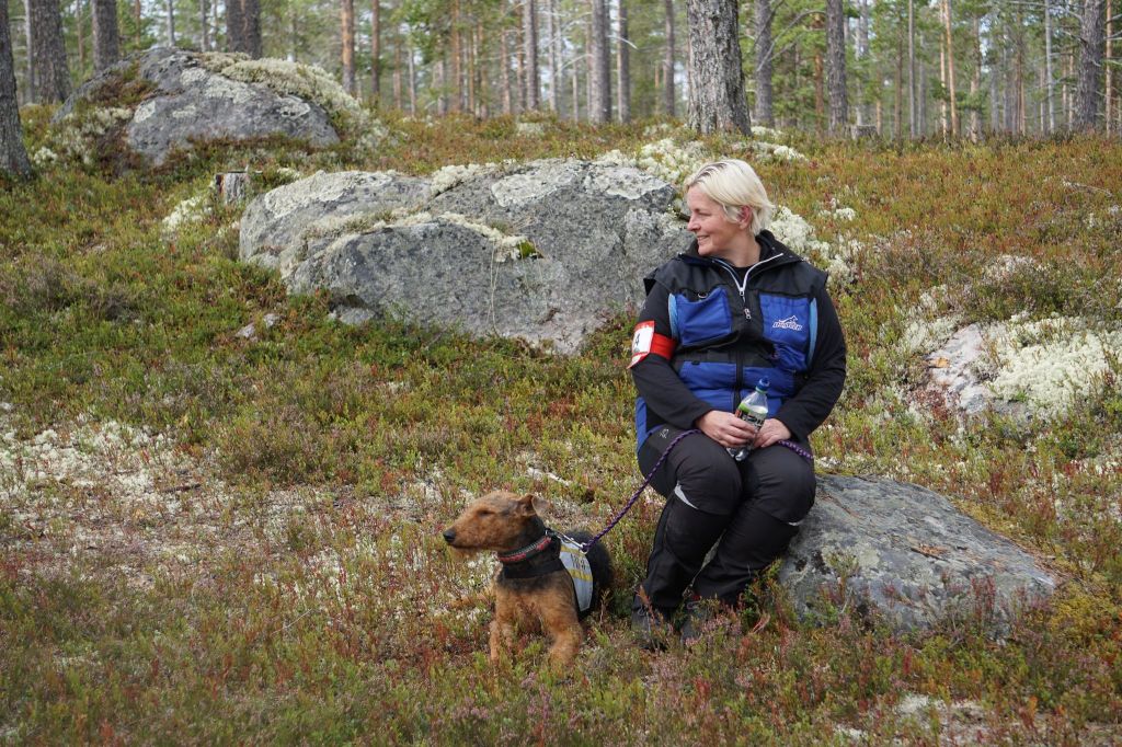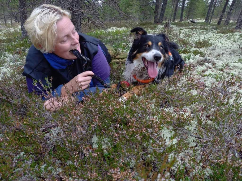 Felles pinnefelt: Her hadde vi lært en ny metode av Vibecke. Jeg husket fjoråret der hun tygde og sto i. Det skulle ikke skje iår. Vi var superfokuserte da startskuddet gikk. Og hun jobbet såååå bra! Jeg kommanderte og sendte henne rundt i feltet, hun fulgte pinnerekkene som spor. Det gikk litt sakte i starten, men så begynte pinnene å strømme inn. Vi endte opp med hele 11 stykker! Det var jo kanonbra.