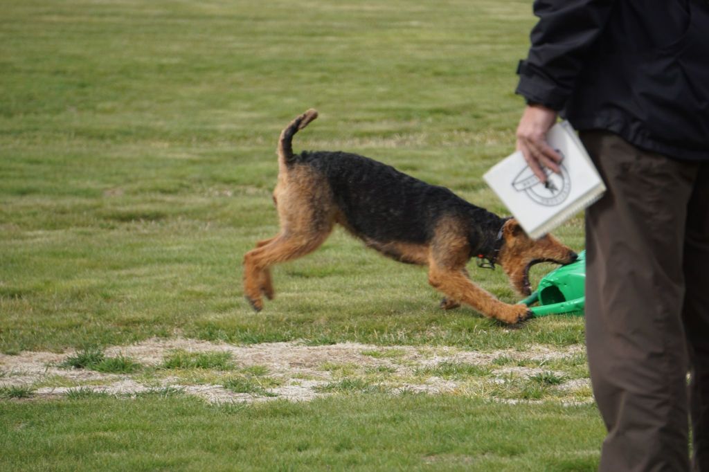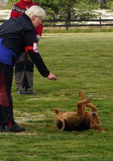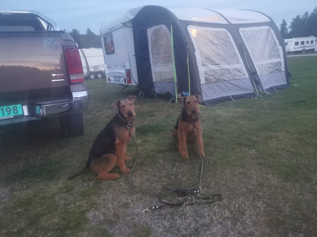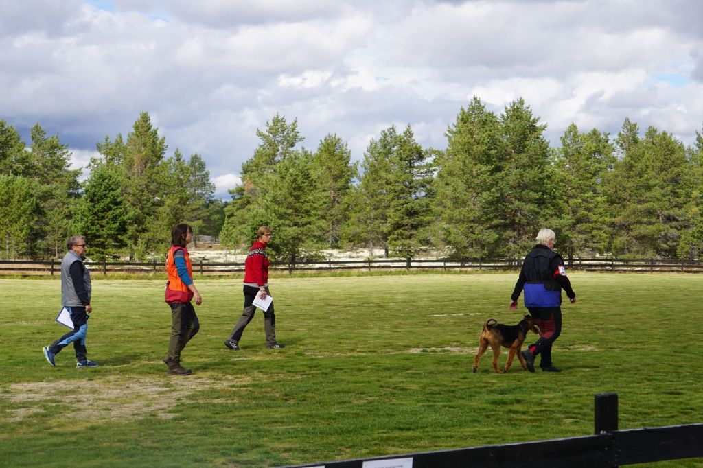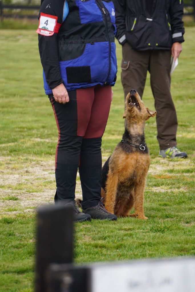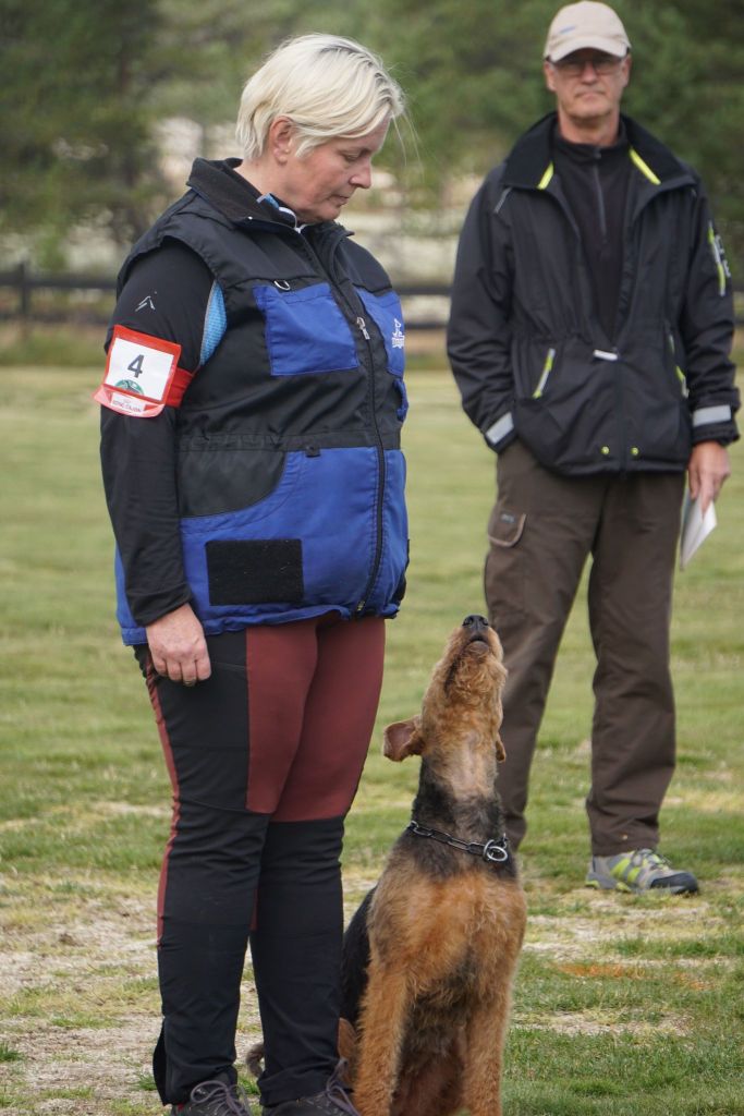 Liten strek i regninga, var at dommern ville snakke om Airedale. Lurte på om det var noen andre i Norge med ferdselsprøve og litt sånn. Sa at han husket disse bikkjene fra langt tilbake. Jeg vet de gjør det for at vi ikke skal være nervøse, men på meg så virker det stikk motsatt. Jeg kan ikke snakke når jeg skal konkurrere.