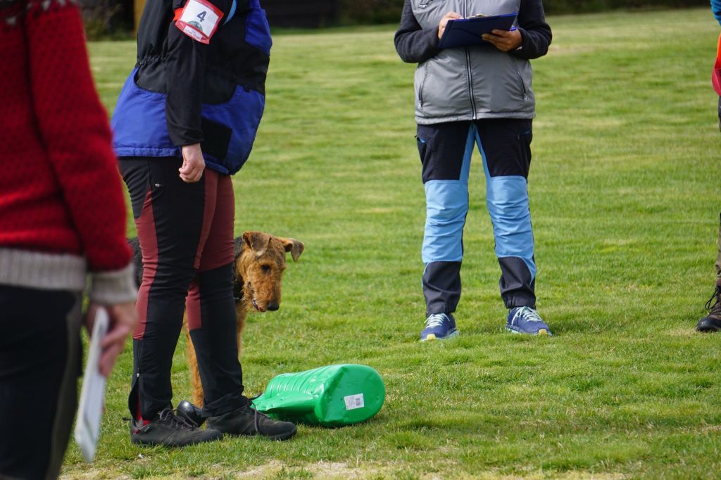 The Challenge feltet er velkjent for å være ordentlig uggent. Det er 50 x 50m , men det er åtte gjenstander som skal hentes. Det er ikke vanlige feltgjenstander, men bittesmå eller større ting. Feltet lå i en u, med masse busker foran og et åpent felt bak, så vi så ikke hva hundene foretok seg hele tiden. I vårt tilfelle, kan det ha vært en fordel…..
