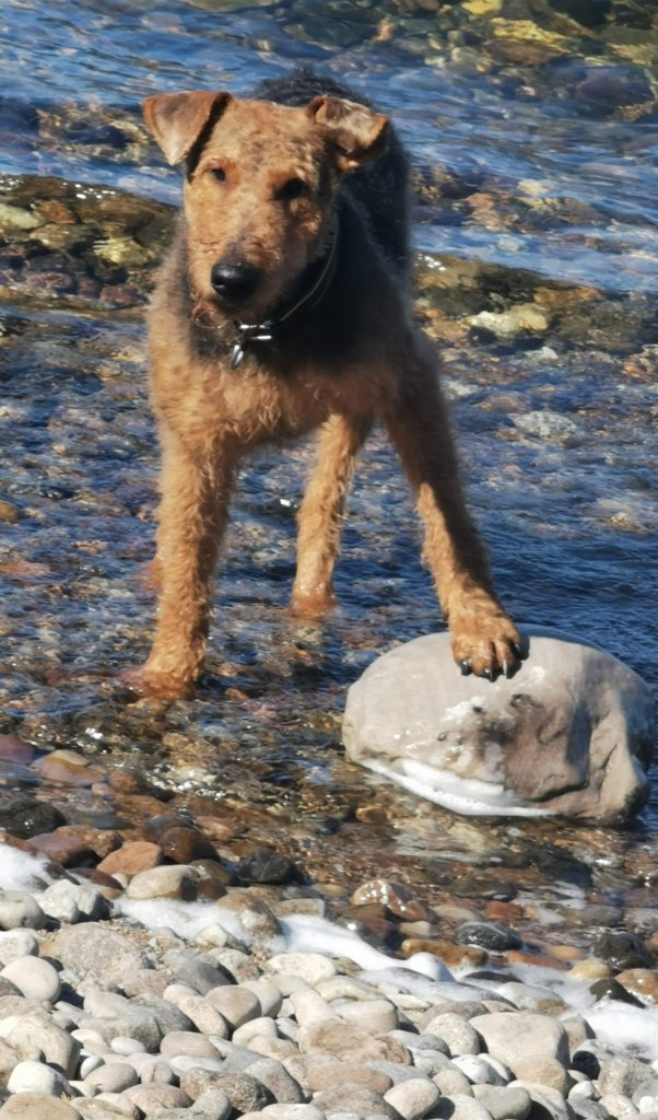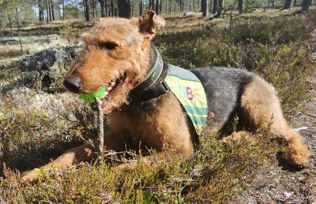 I feltet finner hun fort og effektivt, men det blir jo ikke levert fullt så effektivt da. En stor bamse ble hivd opp i lufta og tygd i vei på. En liten rød ting likeså. The Challenge feltet har flere og mindre og vanskeligere ting enn et vanlig NBF felt.. Men vi fant 7 av 8. Flott søk! Men da vi klokka ut med karakteren 6.5, ramla slukøret på plass. Men bikkja hadde jo hatt full fest da!! Så for henne var det gøy.