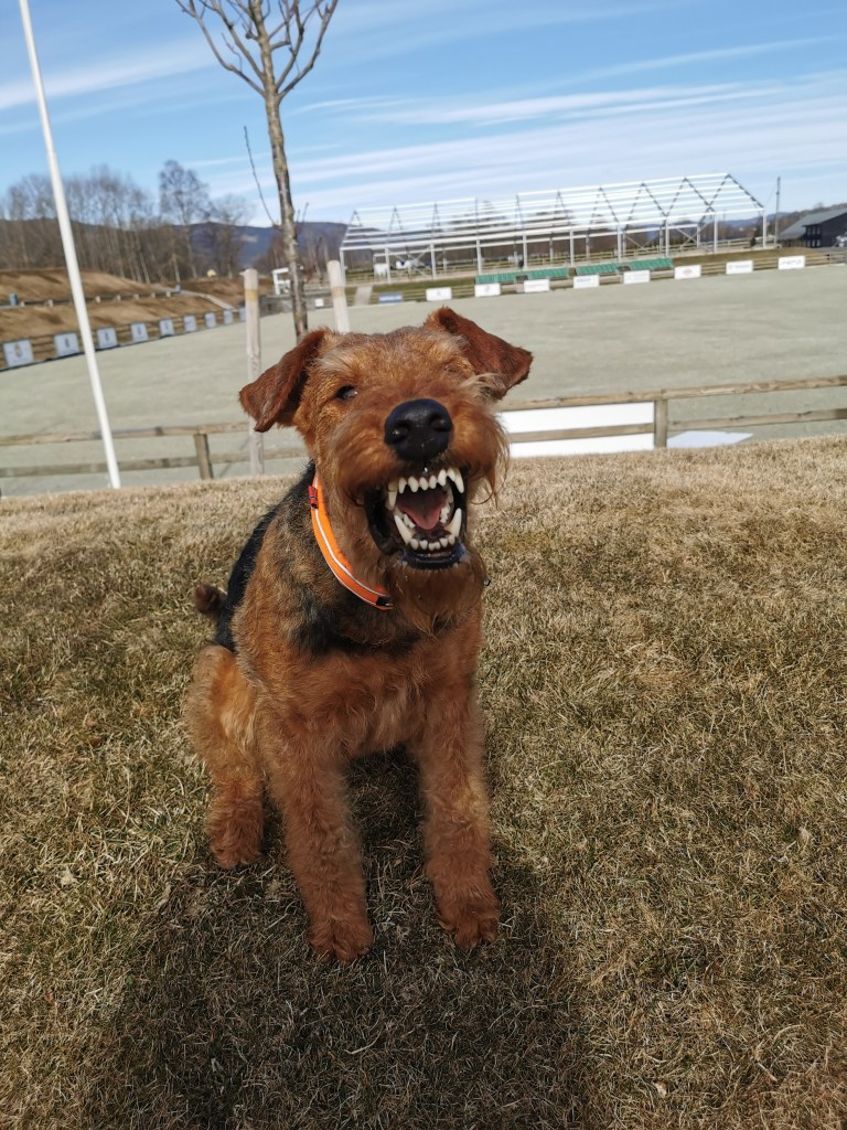 Vi fikk en fin gjennomgang av dommer etterpå, som forklarer at hun er en ‘mycke fin hund’ . At hun går all in på alt og tilslutt blir litt for utslitt til å bli ferdig med alle intrykkene. Slik at når det da skytes oppå alt dette, så velger hun vekk å leke skikkelig.