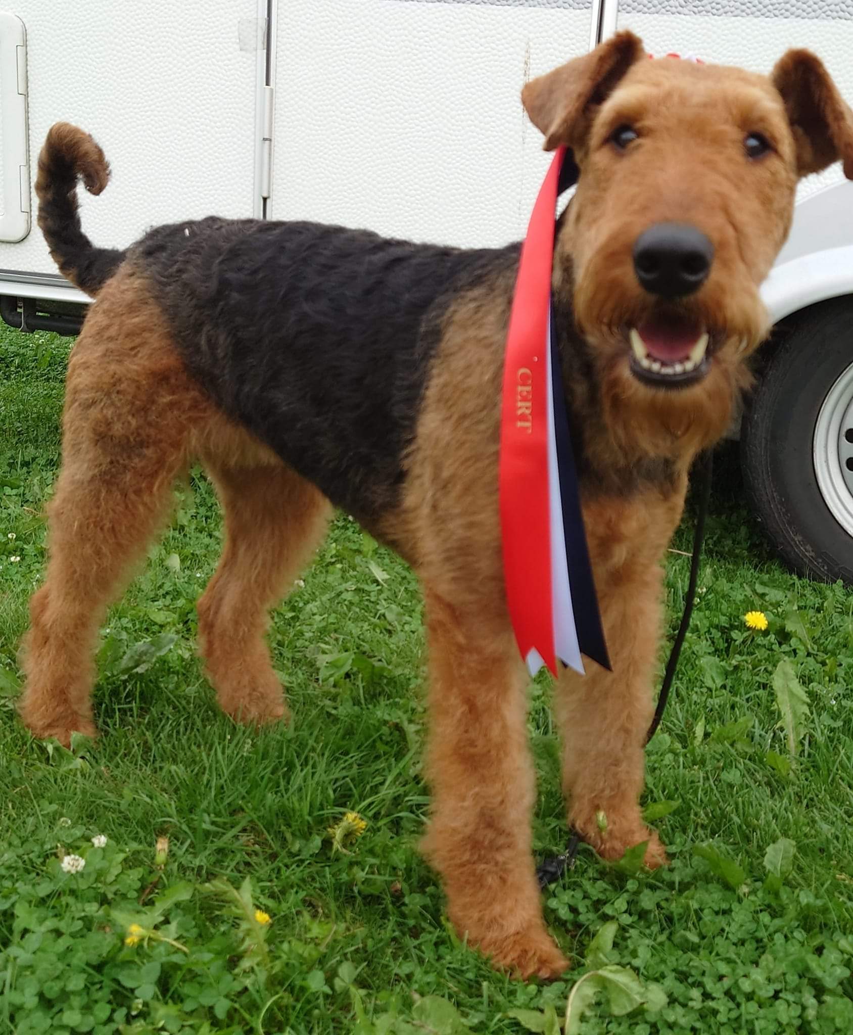 Så stabil, flink og kul som Quinny er, og så frisk og sunn hun er både i hodet og kroppen, så ville hun uansett tilført rasen noe om hun så var blå.. Men jeg tenker nå at titler er viktig. Meritter er viktig. Ting må dokumenteres for fremtiden. Og pr idag så er det faktisk ikke en eneste Airedale fra tyske brukslinjer som er norsk eller svensk utstillings Champion. Så jeg skal innrømme at det hadde vært stas å fått til det. En kuriositet er at det er heller ingen Airedale i Norge som er Champion som har bruksmeritter heller da. Så akkurat det er ganske så ille. I Sverige har Kennel Lisjø fått til dette innenfor blodspor. Gratulerer så mye!