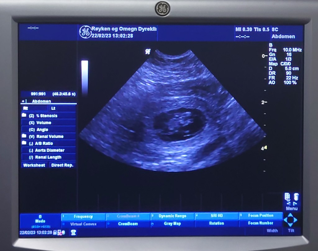 Vi så akkurat det vi hadde forventet å se; flere ‘bobler’ som akkurat var i ferd med å skifte form fra helt runde til avlange. Og vi kunne se at det var noe inni dem også. Det er vanskelig å se antall på ultralyd, men vi så hvertfall fire forskjellige og flere enn det. Det vil jo da si at alt er iorden. Hadde vi kun sett en – eller ingen, så kunne vi jo ikke være sikre på at det var OK.