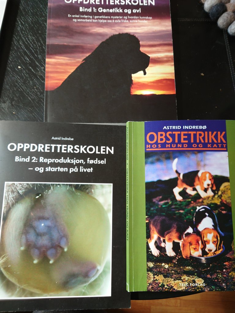 Vi har kjøpt fødekasse på finn.no og jeg har lest flere kjempebra bøker av Astrid Indrebø, slik at jeg skal forstå litt mer av dette. Hadde jo tidligere en kattekennel med mange fødseler, men hund er – vel, litt MER lisssom…. Jeg har heldigvis mange kjente som er erfarne oppdrettere og dere får nok litt telefoner i nærmeste framtid 🙂