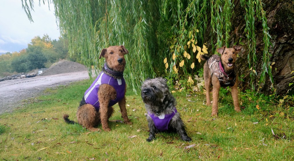 Vi pådro oss 3 hunder. Det gikk sådann til; Vi kjøpte først Cairnen Emil fordi vi møtte en kjempehyggelig oppdretter, fordi Cairn Terrier skulle kunne brukes til ‘alt’ og fordi jeg ikke reagerer allergisk på terriere.. Så kom kullsøster Ronja flyttendes fra samme hyggelige oppdretter, fordi hun hadde kommet tilbake fra en annen som ikke ville bruke henne i avl likevel, fordi jeg tenkte det ville være moro for Emil med selskap og litt fordi Cairn skulle kunne brukes til ‘alt’.. Etter noen år med mye prøving og feiling iforhold til diverse konkurranse og redningstrening, måtte jeg stikke fingeren i jorda og innse at nei – de kan ikke brukes til ‘alt’. Jeg trengte en hund til, større hund, en hund med mer arbeidslyst, en hund som er ‘laget’ for å jobbe… Vips så hadde vi også Airedale Terrieren ChaBlis!